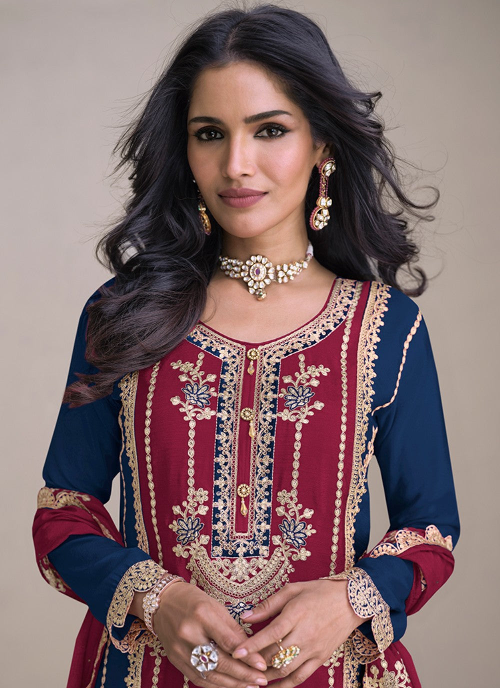 Size: The bust size for the top/kameez can be customized between 34 and 42 inches.