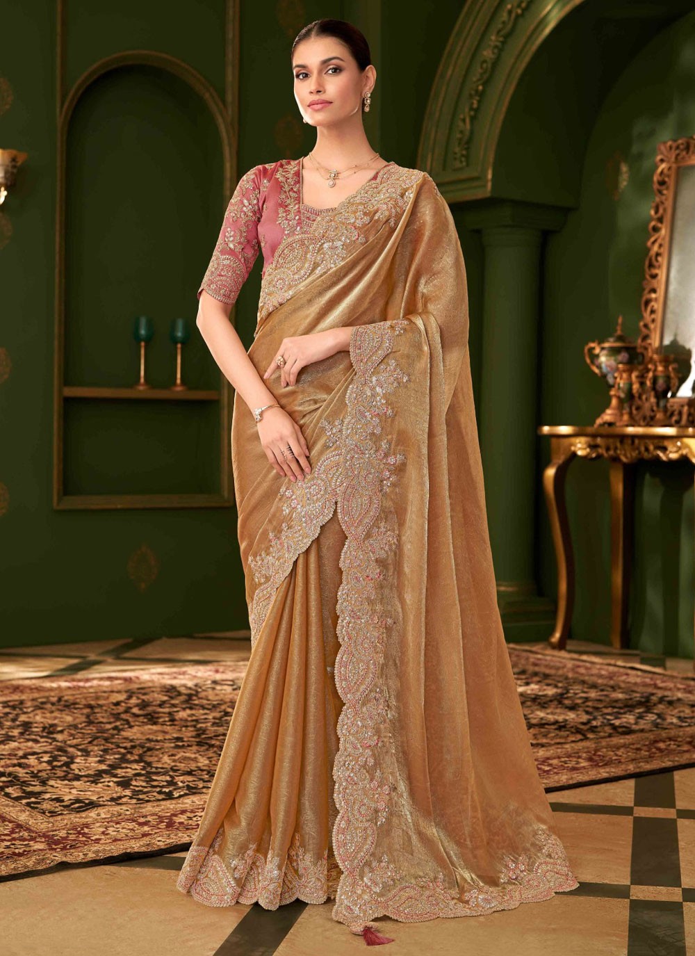 - Heavy embroidered sarees come with an unstitched blouse, with embroidery on one side only.