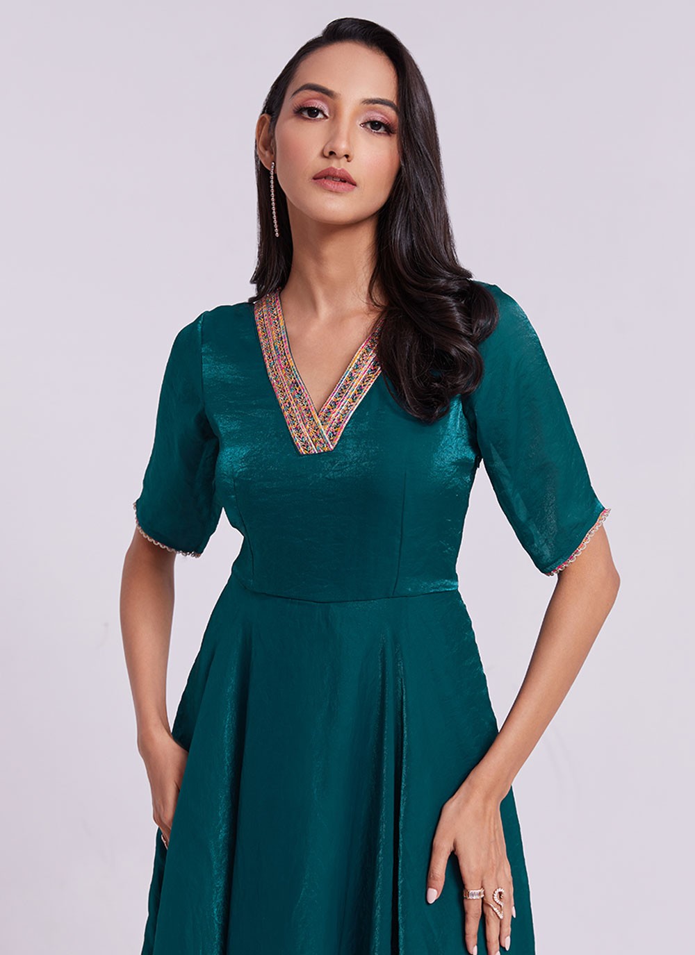 - You can select your preferred neckline design and neck depth; however, the chosen design may not be suitable due to the embroidery or style of the dress.