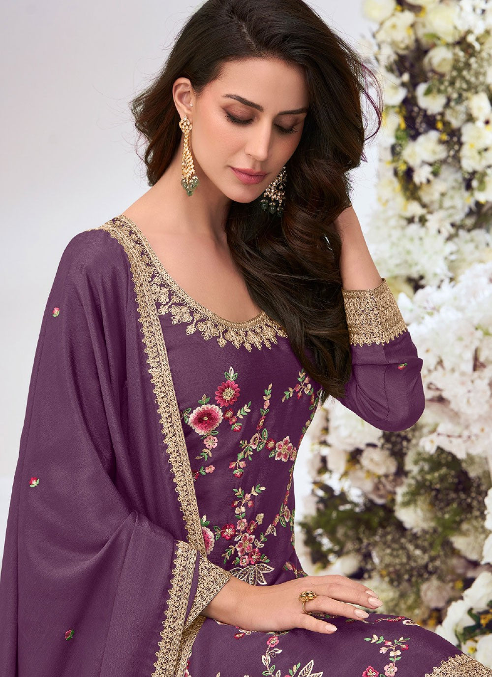 Palazzo Suit Embroidered, Zari Purple T8062