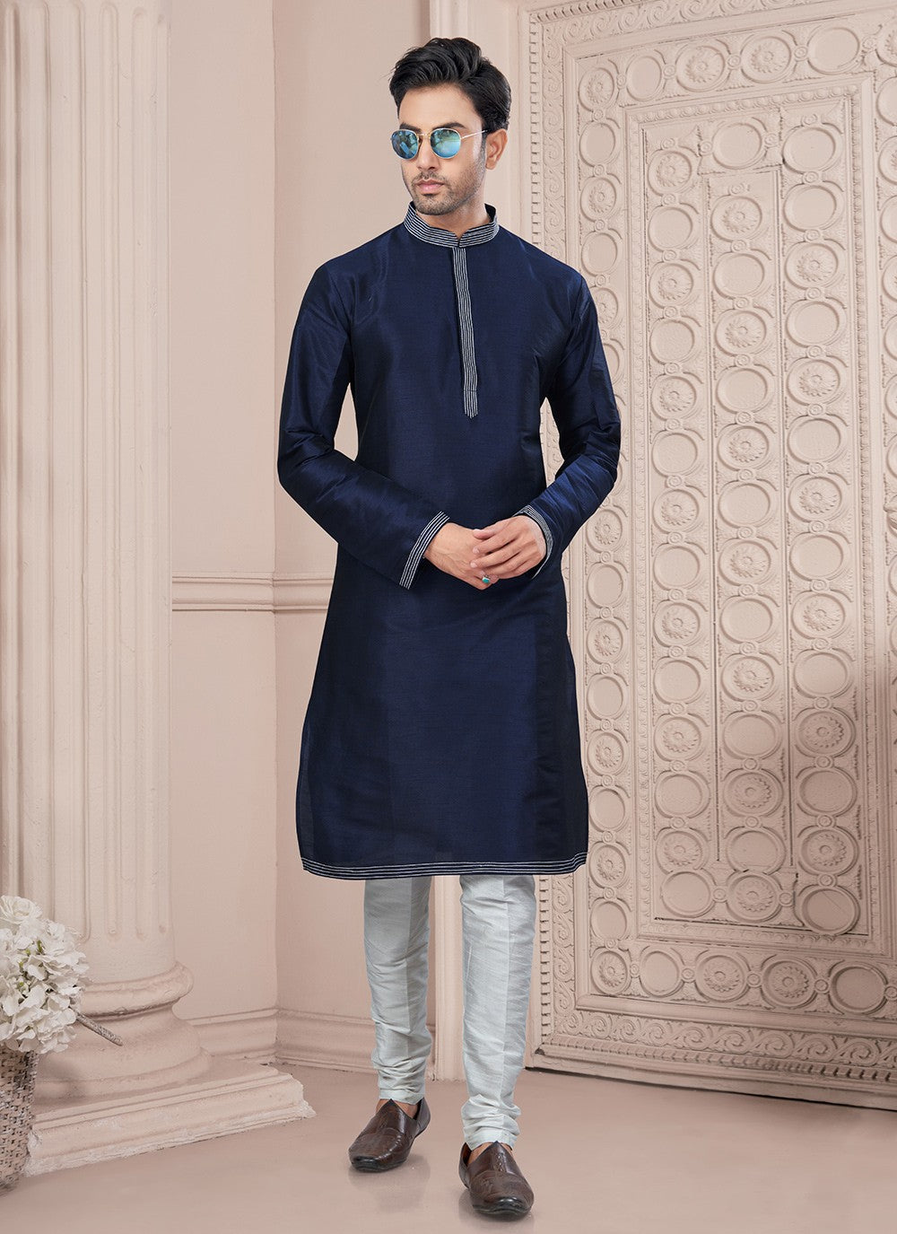 Thread Art Silk Navy Blue Kurta Pyjama - M8716